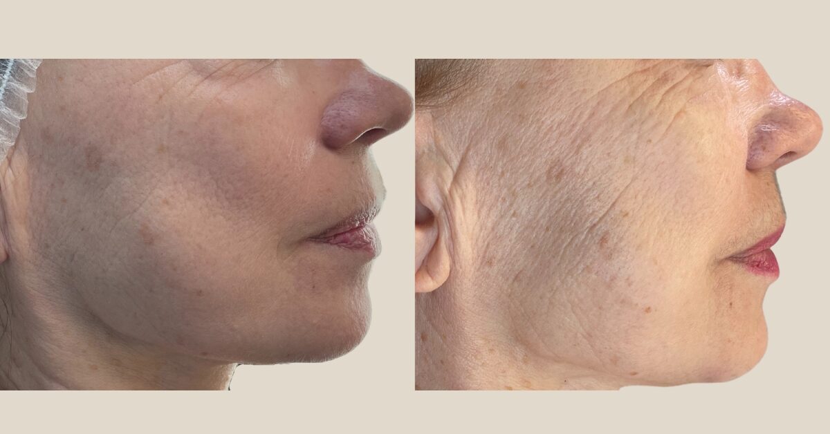 Na zdjęciu widzisz realny przykład poprawy jakości skóry po serii zabiegów mezoterapii igłowej.